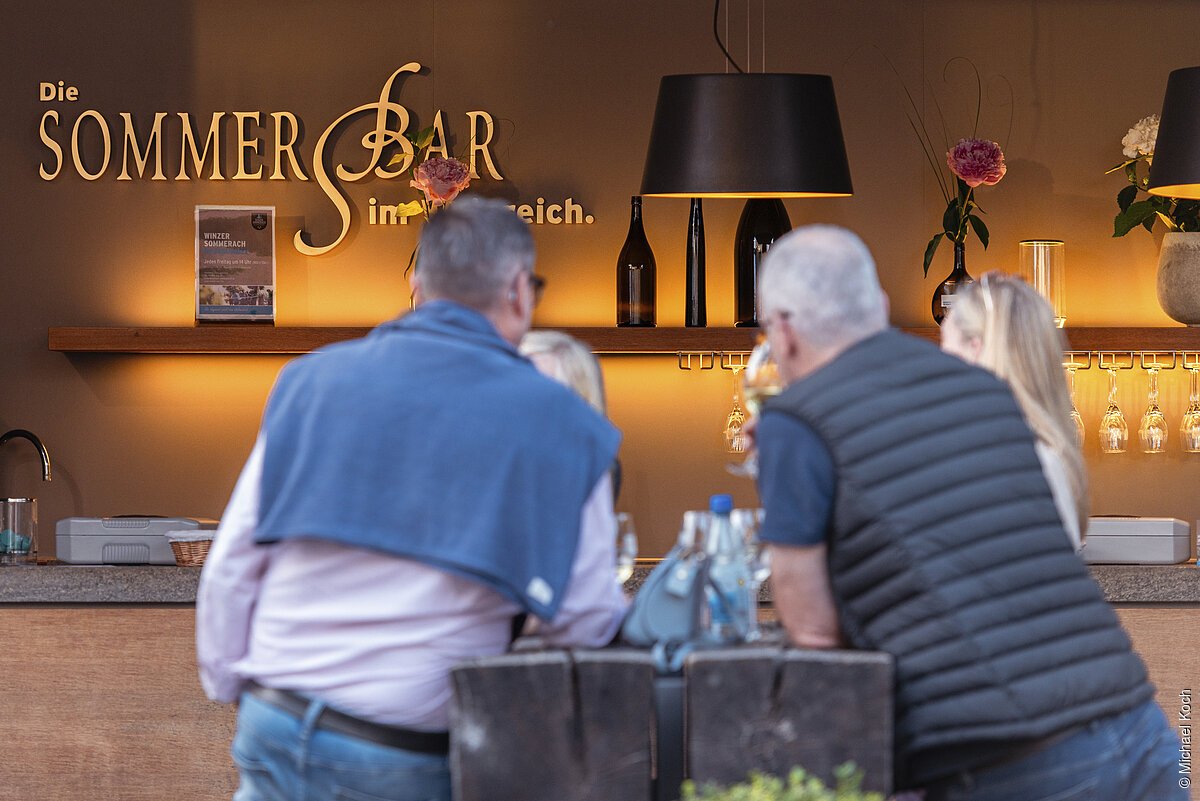 Die Vinothek WEINREICH ist stets ein beliebter Treffpunkt, in der man ganzjährig an der Kostbar Weine aus nachhaltigem Weinbau genießen kann. In den Sommermonaten bietet die Sommerbar zusätzliche Sitzplätze in den schattigen Weinlauben oder unter den zahlreichen Sonnenschirmen, wo zusätzlich Kleinigkeiten zum Wein angeboten werden.