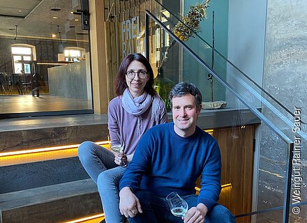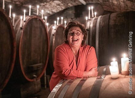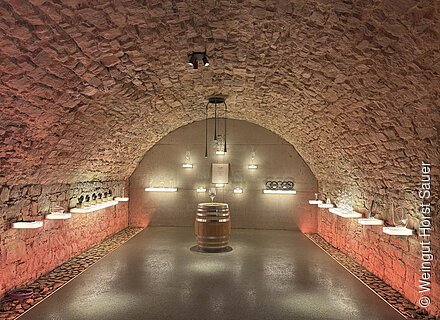 Weiter geht es zum „Weinreich Sommerach”, in dem Interessierte in der Weinerlebniswelt und im Barrique-Keller mehr über den fränkischen Weinanbau erfahren.